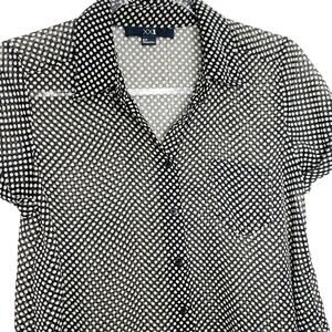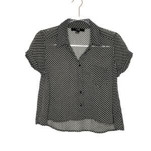 XXI Polka Dot Cropped Sheer Button Down Blouse Cap Sleeve Black White Size Small