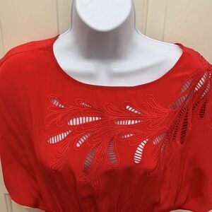 XXI Size Small/ Petite Red Scoop Neck Flutter Sleeves Elastic Waist Embroidered