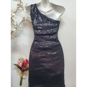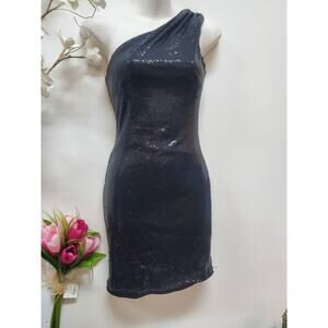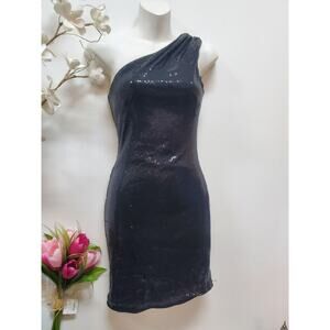 XXI Small Sequin Dress Womens Black One arm Bodycon Short Sequin Party Cocktail