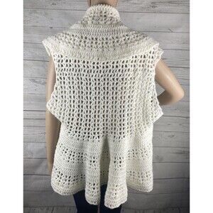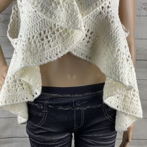 XXI Sweater Vest Ivory Open Knit Ruffled High Low