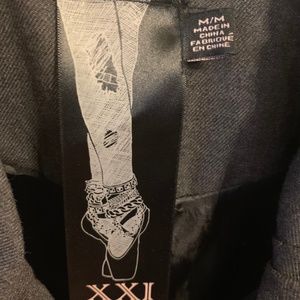 XXI TWIST BUTTON DOWN JACKET/COAT SIZE MEDIUM. MADE IN CHINA. DESIGNED TO BE LONG WITH RUFFLED SHOULDER AND SLEEVES. CHARCOAL GREY