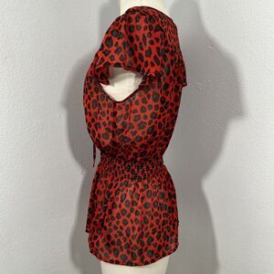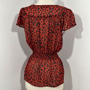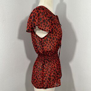 XXI Top Womens S Petite Leopard Smocked Office Siren Flutter Blouse