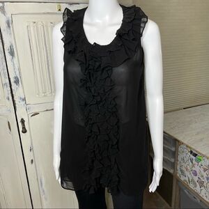 XXI Twenty One Black Ruffle Front Sleeveless Blouse Top Size Small