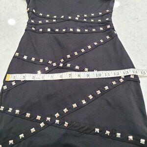 Preowned in good clean condition. XXI by Forever 21 Black Studded Bodycon Sleeveless Mini Dress Size SP