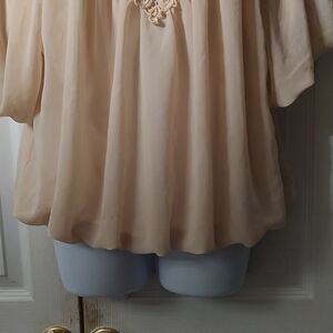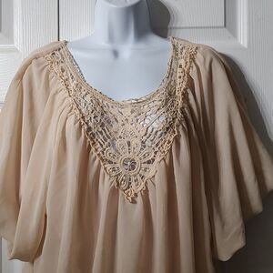 XXI cream crochet balloon bloom style blouse classy night out party Sz M
