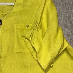 XXL 100% Linen. Tunic Ellen Tracy Company 3/4 tab sleeves gold zipper and buttons