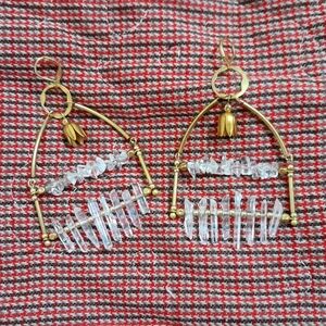 Go for "WOW factor" with these striking natural stone earrings. I lovingly built them from baby Quartz points, Quartz chips, and fade-free, high-quality raw brass.