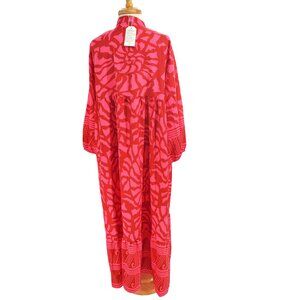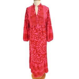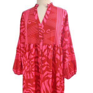 This vibrant statement dress captures resortcore energy with a playful, coastal-inspired print blending coral and wave motifs. Designed with a relaxed silhouette and partial button front, it embodies carefree Palm Beach chic and modern bohemian elegance. The lightweight fabric moves effortlessly, making it perfect for sunny getaways or everyday wear with a touch of tropical flair. Its tiered hem and gathered waistline add gentle volume, while the vivid hues nod to island luxury and retro vacation style, offering the perfect mix of comfort and confidence.
