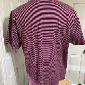 Gently used (like new), GREAT condition, Maroon Pinstriped polo shirt. Large 100% Cotton.