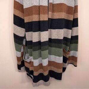 XXL Egs California Striped Cardigan Sweater Long Sleeve Earth Tones Green