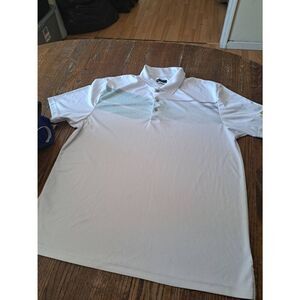 Good Used Condition Men's Size XXL Jack Nicklaus White, Green, Grey Three-Button Short Sleeve Pullover Golf Athletic Athleisure Loungewear Casual Wear Polo Shirt with Collar and Side Slits