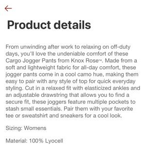 (XXL)- Knox Rose Women's Cargo Jogger Pants