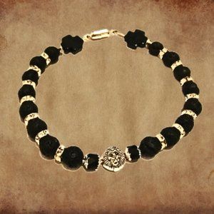 XXL Lion Head Lava Rocks Mens Bracelet