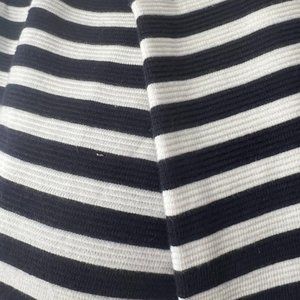 XXL Merona striped blazer. Built in shoulder pads. Darker stripes look either dark blue or black depending on the light. Button closure on sleeves and front. Decorative pockets.