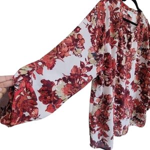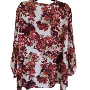 XXL V Neck Floral Button Up Long Sleeve Tunic