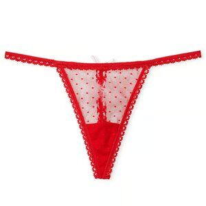 Victoria's Secret Dream Angels Lipstick Red Dotted Mesh and White Lace-Up Pom-Pom V-String Panty ... Size XXLarge
