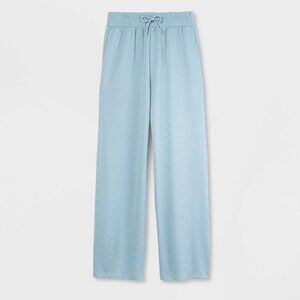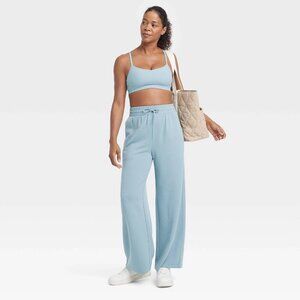 XXL - Womens Airy Sleek Ribbed High Rise Wide Leg Pants - AIM - Steel Blue