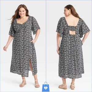 XXL - Womens Crepe Flutter Short Sleeve Midi Dress - A New Day - Black White