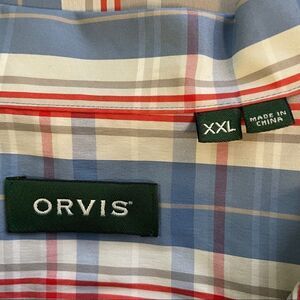 XXL Orvis Tan-Blue SS Wrinkle Free Shirt