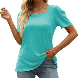 XX-Large Women's Casual Loose Fit Summer Tee with Square Neck & Puff Sleeves