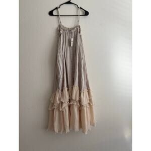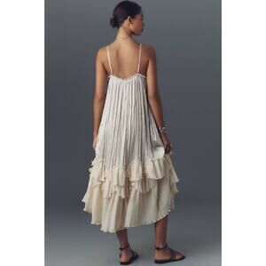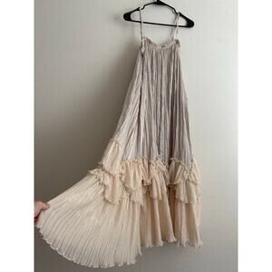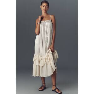 XXS Anthropologie Sleeveless Square-Neck Layered Plissé Maxi Dress