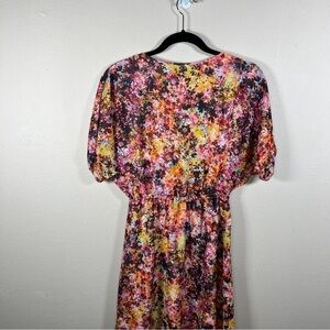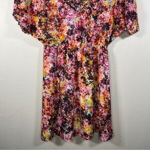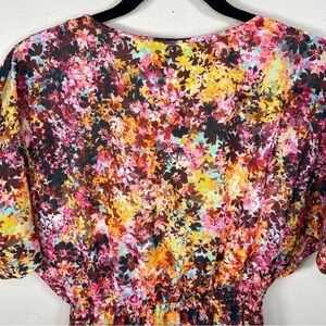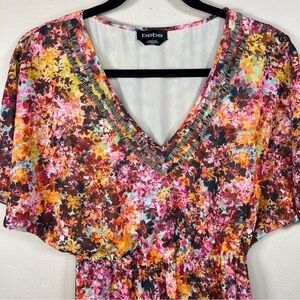 XXS BEBE COLORFUL FLORAL DRESS BEADED NECKLINE V NECK BOHO BOHEMIAN LINED SHORT