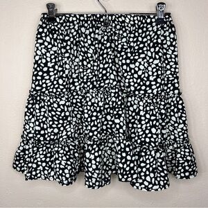 XXS Black White Dot Print A Line Mini Ruffle Skirt Pull On Elastic Waistband