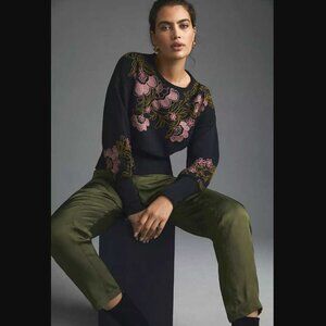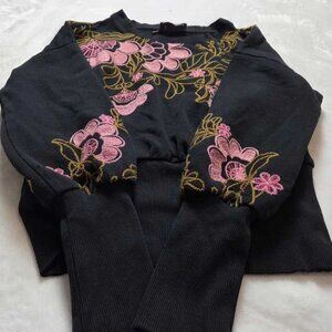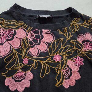 XXS By Anthropologie embroidered floral sweatshirt sweater in black
