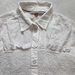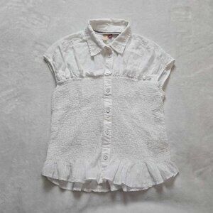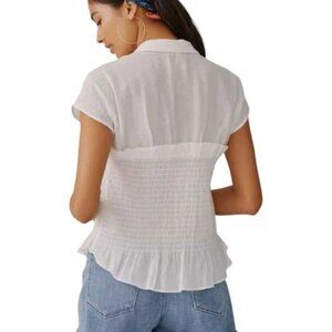 XXS Pilcro x Anthropologie smocked button up white corset blouse
