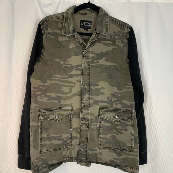 XXX Rude denim camo with fleece sleeves jacket size small