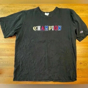 Champion XXXL short sleeve t-shirt, front puffy letters with a small C sleeve hit, plain back.