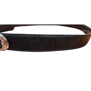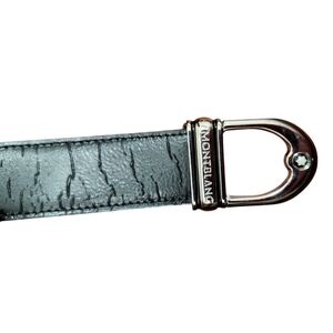 Crafted for the discerning gentleman, the Montblanc Horseshoe-Buckle Reversible Leather Belt is a testament to elegance and versatility. This belt, a staple in any well-curated wardrobe, features a sleek black leather design that reverses with a mere flick of the buckle, offering two looks in one. The size 42 belt is adorned with a sophisticated horseshoe-shaped buckle, adding a touch of class to any outfit. Its durable leather construction ensures longevity, while the reversible nature provides convenience and style. Perfect for a day at the office or an evening out, this belt is an exceptional choice for those who appreciate quality and style.