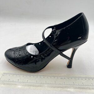 XYD Black Mary Jane Cut-Out High Heels Round Toe Oxford Style Ankle Strap Pumps