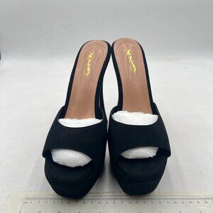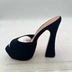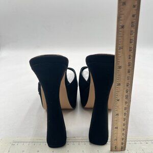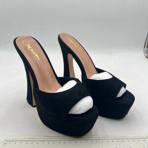 XYD Black Open Square Toe Platform Slide Sandals High Chunky Heel Slip On Mule
