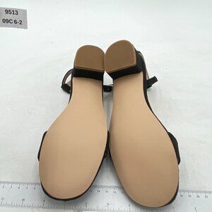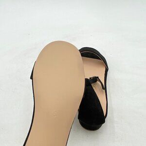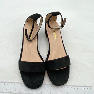 XYD Black Suede Open Toe Ankle Strap Buckled Low Chunky Heel Sandal