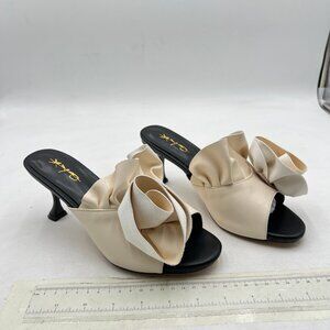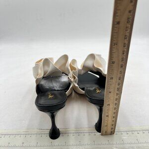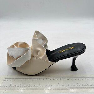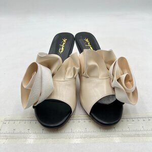 XYD Black White Floral Appliqué Open Toe Mules Ruffled High Heel Sandals Summer
