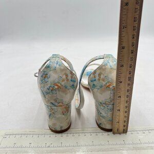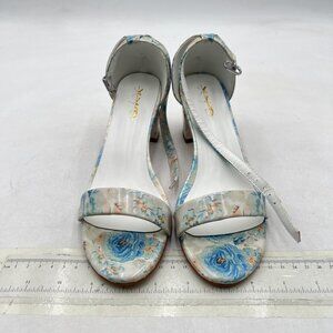 XYD Blue Floral Open Toe Low Heel Block Sandals Buckled Ankle Strap Shoes