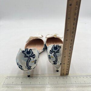 XYD Blue Flower White-bow D'Orsay Kitten Heel Bridal Bowknot Pointed Toe Pumps