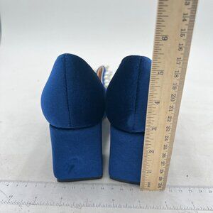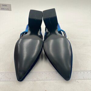 XYD Blue Pointed Toe Chunky Pumps Slip On Mary Jane Single Strap with Pearl Stud