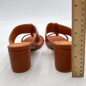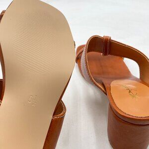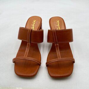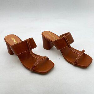 XYD Brown Double Straps Slip On Slipper Sandals Open Toe Chunky Heel Mule Shoes