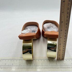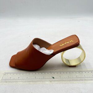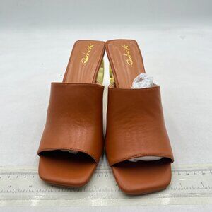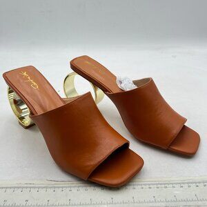 XYD Brown Open Square Toe Slide Sandals Round Circle High Heels Slip On Mules
