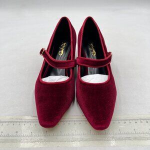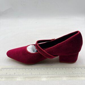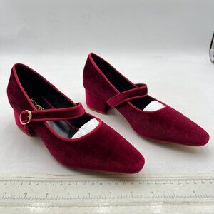 XYD Burgundy Low Heel Chunky Mary Jane Pumps Square Toe Buckled Strap Daily Shoe