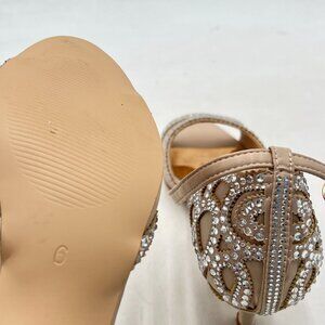 XYD Champagne Peep Toe D'Orsay Kitten Heel Rhinestone Studs Ankle Strap Sandal