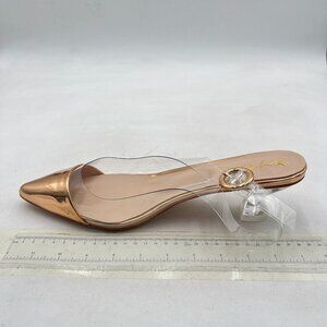 XYD Champagne Transparent Slingback Clear Low Heels Pumps Pointed Toe PVC Shoes