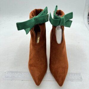 XYD Classical Pointed Toe Ankle Booties Low Kitten Heels Graceful Boots Brown