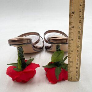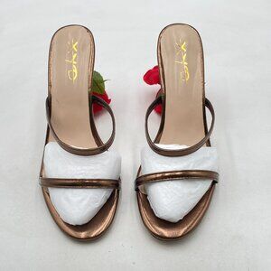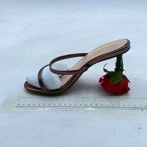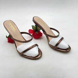 XYD Dark Brown Romantic Rose Heel Summer Chic Two Slender Straps Open Toe Slip On Slides Sandals Resort Holiday Party Shoes