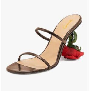 XYD Dark Brown Romantic Rose Heel Summer Chic Two Slender Straps Open Toe Sandal