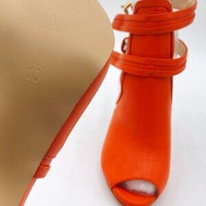 XYD Dark Orange Peep Toe High Heels Buckled Double Straps Cutout Ankle Bootie