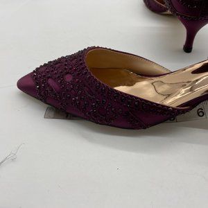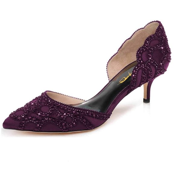 XYD Dark Purple Pointed Toe Low Heel D'Orsay Rhinestone Pumps Bridal Shoes