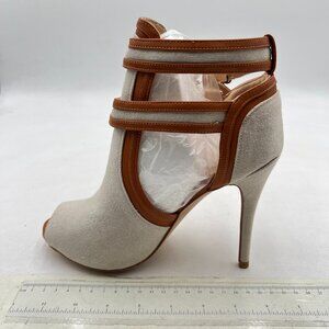 XYD Gainsboro-brown Peep Toe Sandal Ankle Booties Dual Buckled Straps Stiletto Heels Stylish Cutout Event Party Pumps